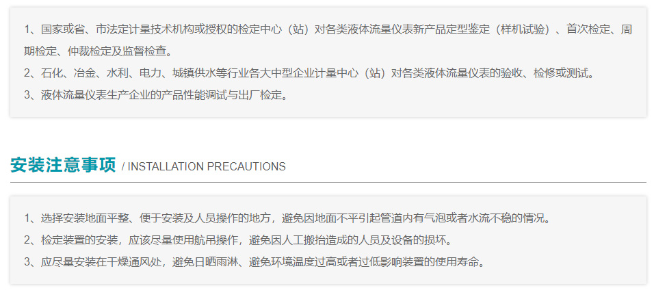 | 被檢表種類 | 電磁流量計、渦輪流量計、金屬管浮子流量計、渦街流量計等,可單獨一種,可多種同時檢定 | ||