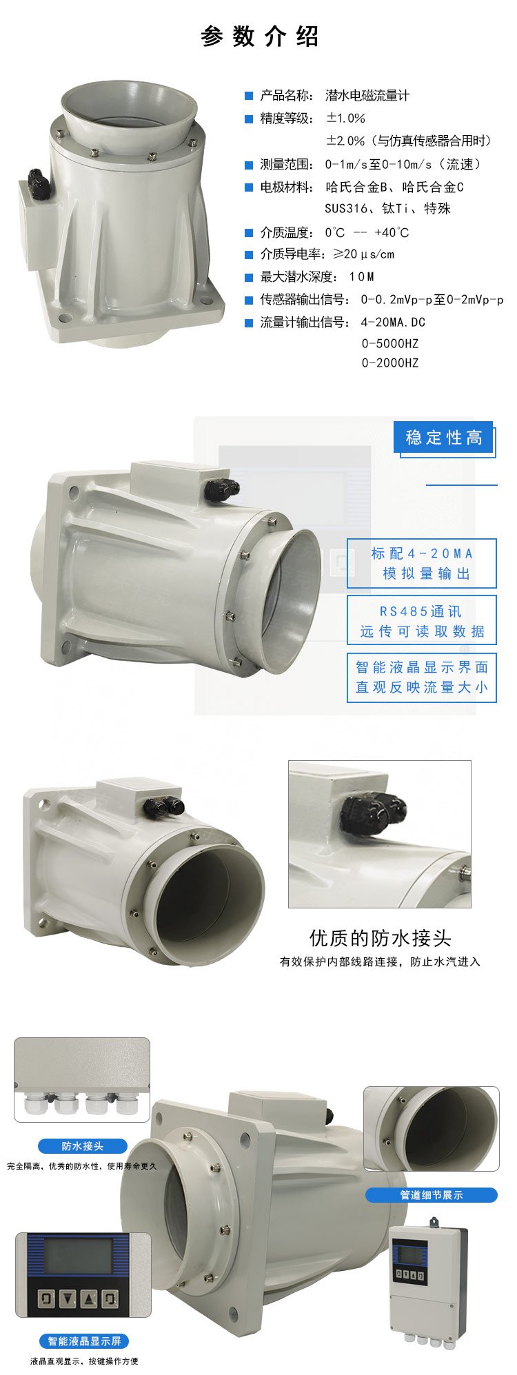 1、潛水型電磁流量計結構簡單,無可動部件,具有很強的抗污、抗堵或抗腐蝕能力,因此可在含有懸浮物或粘結物的流體中使用;